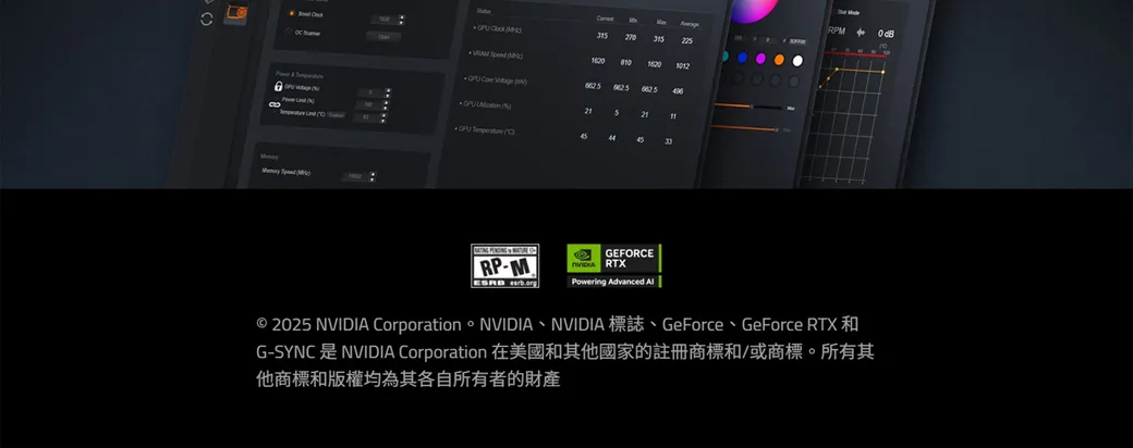 RPM 27031 1012 5 RP-M GEFORCE RTXPowering Advanced Al 2025 NVIDIA Corporation NVIDIA NVIDIA GeForce GeForce RTX G-SYNC 是NVIDIA Corporation 在美國和其他國家的註冊商標和/或商標。所有其他商標和版權均為其各自所有者的